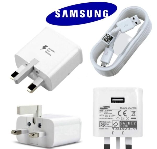 Original Samsung Adaptive Fast Charger with USB Cable – 15W Fast Charging | UK 3-Pin Plug